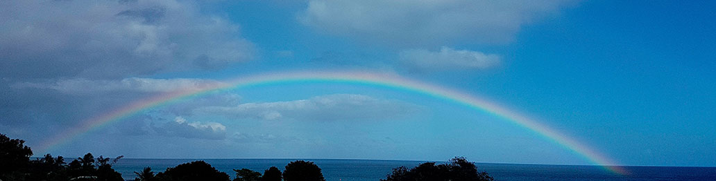I was head down, totally immersed in writing this post but something made me look up from my desk and in that moment, there was a breathtaking scene in front of me… a rainbow hugging the ocean. Such synchronicity! No matter what the situation, if you choose to see the rainbow of colour, you open yourself up to finding the pot of gold.